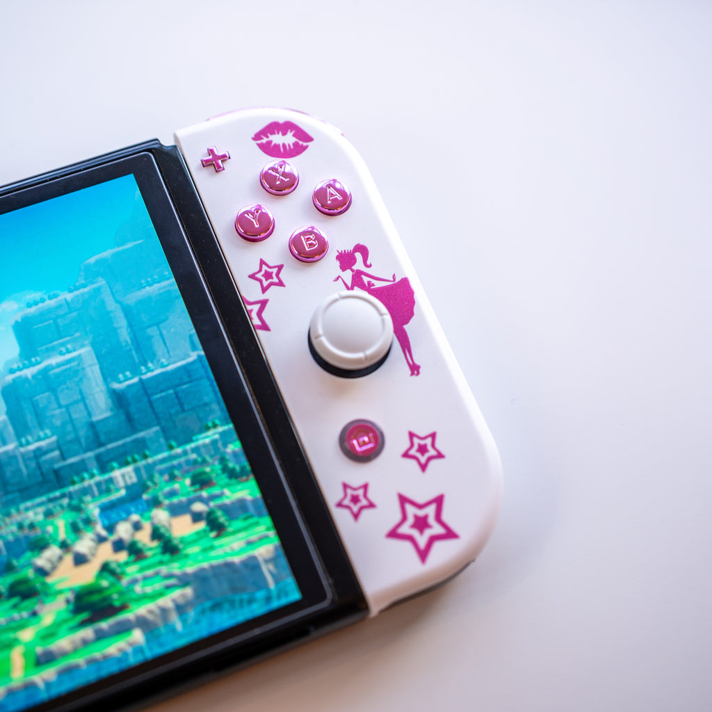 Ditch the drab and embrace the (pink) fab with our custom Nintendo Switch “Non-Barbie” Joy-Cons: The perfect power-up for any princess gamer.