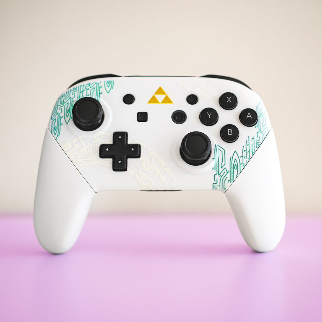 Our Tears Of The Kingdom Pro-Controller infuses the legacy and gaming history of The Legend Of Zelda into a carefully crafted controller body. It is the most intricate and difficult to produce design we have created for a Pro-Controller. This means only one in a few passes our quality check :)