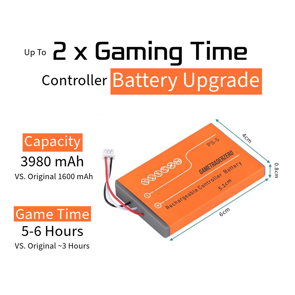 - 3980 mAh high capacity PS5 controller battery. 3.65 V/14 lithium-polymer battery, premium grade A cells for a longer battery life.