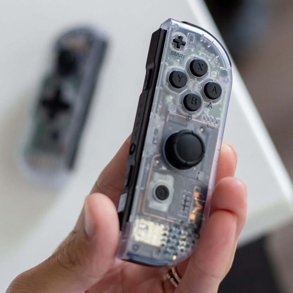 This unique Joy-Con mod is a tip of the hat from us to this wonderful piece of gaming tech: The Game Boy Pocket, in a clear shell version.