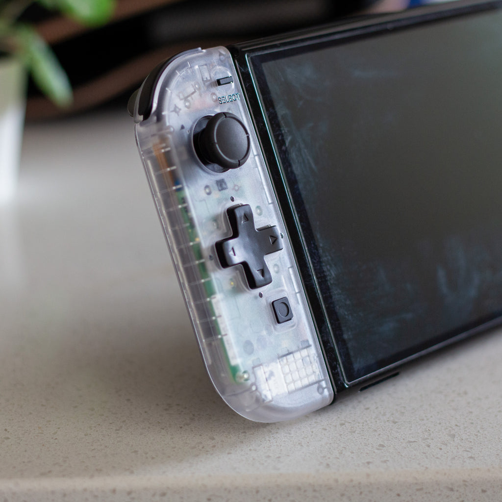 Joy-Cons Clear “Game Boy Pocket” Mod - Nintendo Switch Retro Gaming Controllers Black Buttons and D-Pad