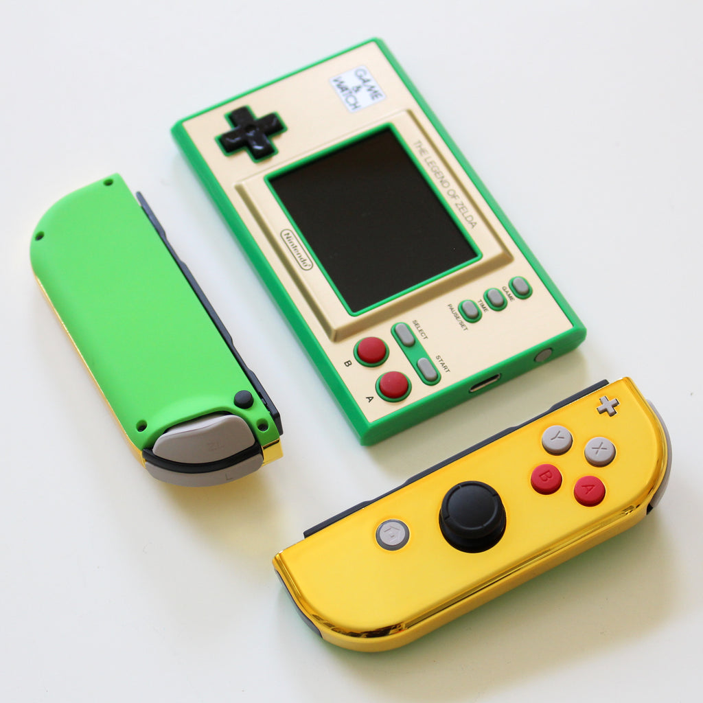 These custom Joy-Cons are our tribute to the Nintendo Game & Watch The Legend Of Zelda Edition, released in November 2021 to celebrate the 35th anniversary of the title that became synonymous with Nintendo together with Super Mario Bros.