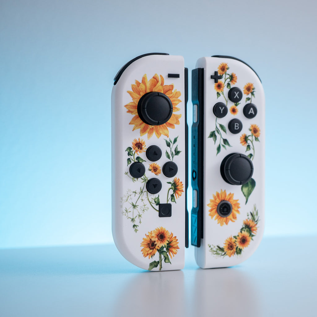 Beautiful sunflower blooms are traditionally a sign of positivity, happiness, cheer, good luck, health and hope. What better way to celebrate a major boss fight win than playing with these stunning custom Joy-Cons?