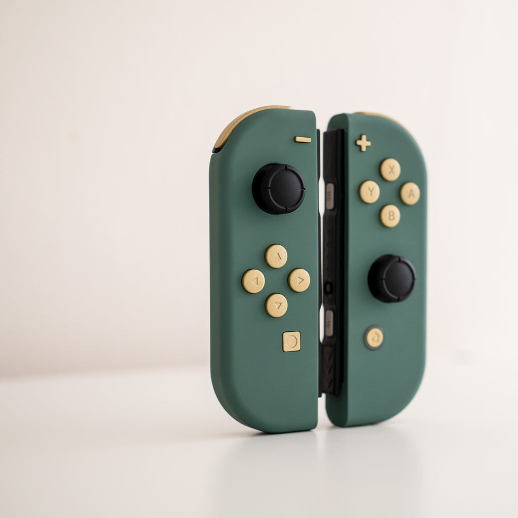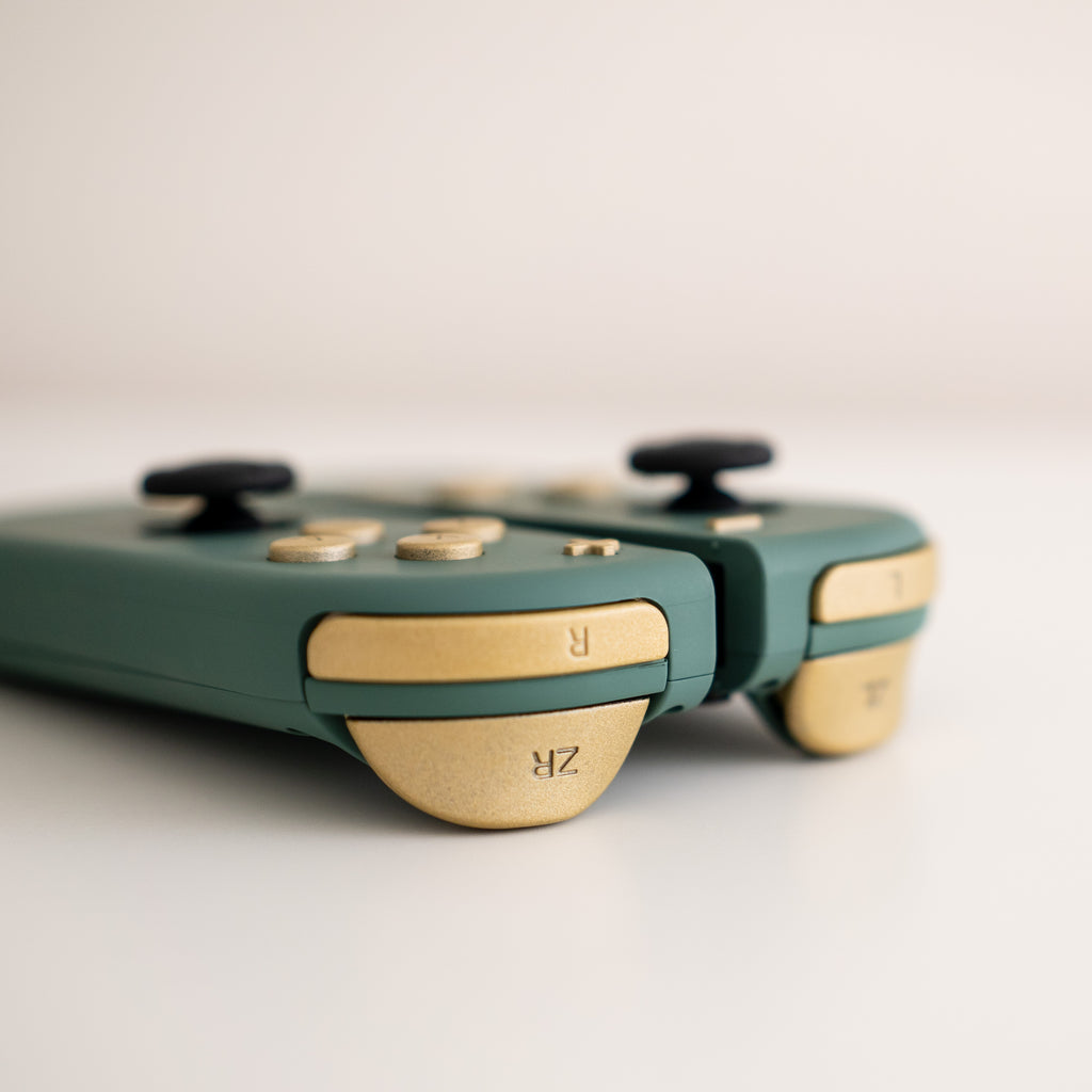 Custom Pine Green Joy-Cons for Nintendo Switch with Matte Brass Buttons
