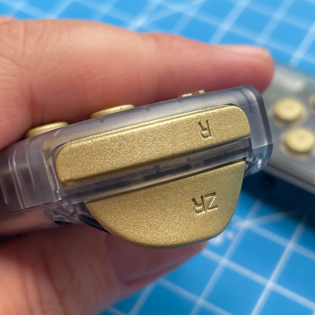 Customized Joy-Cons can completely change the vibe of your favorite Nintendo handheld. This retro gaming clear design with our signature matte brass-finish buttons will not only upgrade your gaming experience, but will also bring a whole new atmosphere into your gaming space.