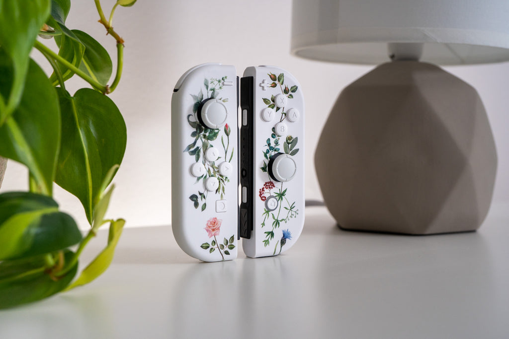 Flowers Vines & Laurels Joy-Cons Mod Nintendo Switch Special Edition Floral Watercolor Custom Controllers