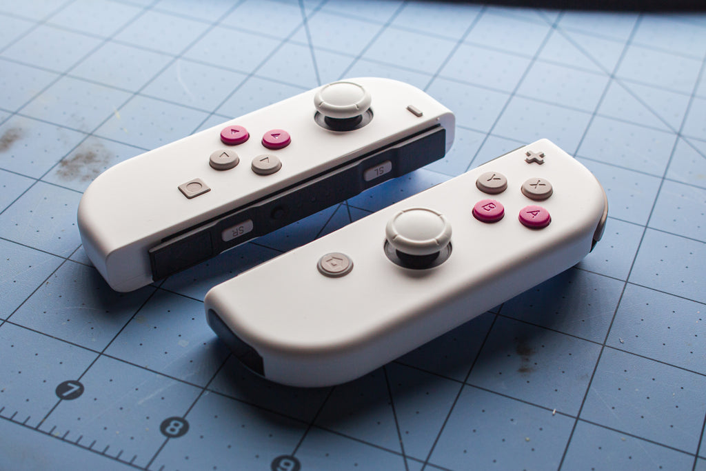 Joy-Con Mod White on Grey and Deep Rose Custom Nintendo Switch Controllers
