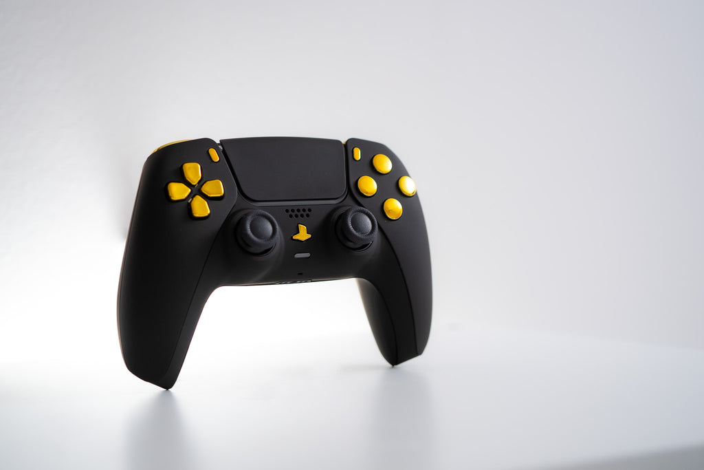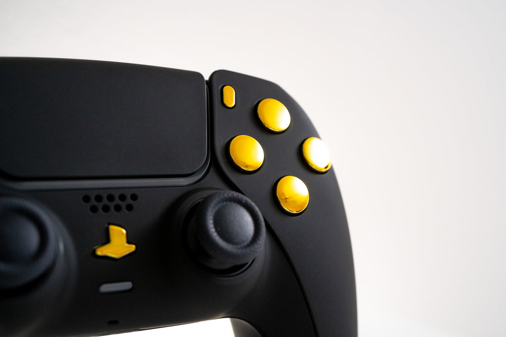Beautiful black shells with gold buttons make this mod look amazing next to your PS5 or in your hands while you play.