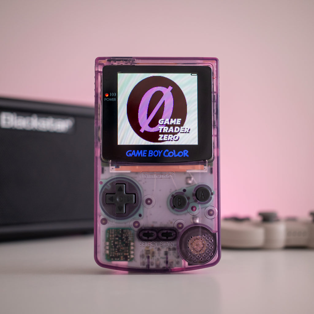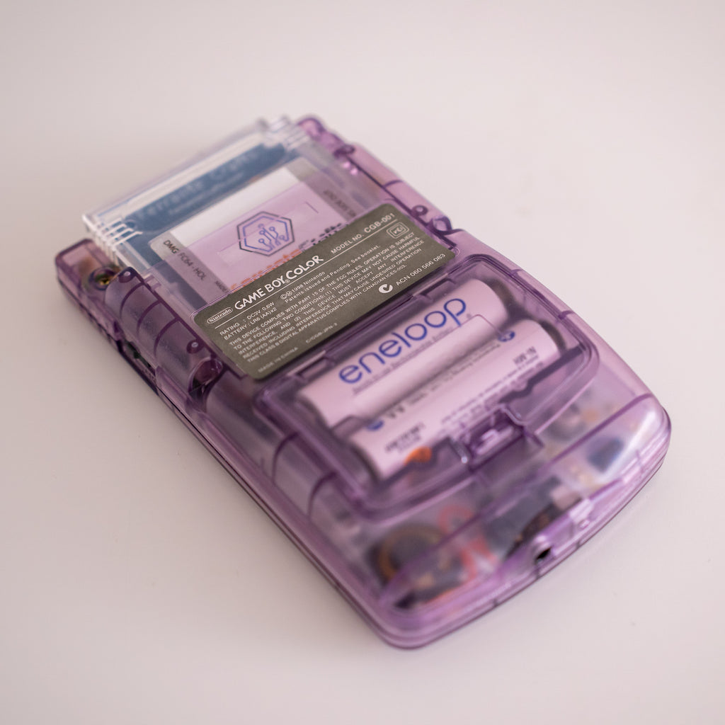 Custom Game Boy Color With Backlit IPS Screen Clear Atomic Purple With Dark Grey Buttons