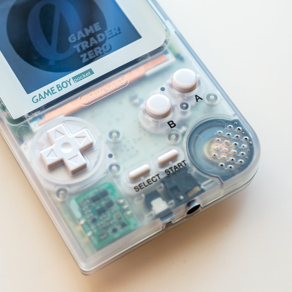 Custom Game Boy Pocket with Backlit IPS Screen Famitsu Clear With White Buttons