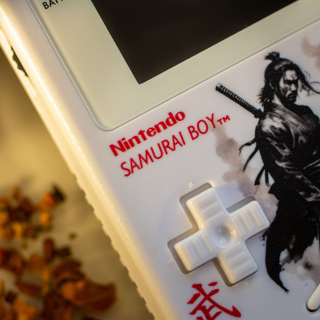 The samurai bushido code, also known as “the way of the warrior,” is a staple of handheld Game Boy Gaming :) The discipline of the “bushi” (warrior) is all that stands between you and completing the next boss fight. So fight well and respect your opponent as you hold our beautiful Samurai Boy. It is our tribute to Japanese culture and history, worthy of a centerpiece place in your gaming setup.