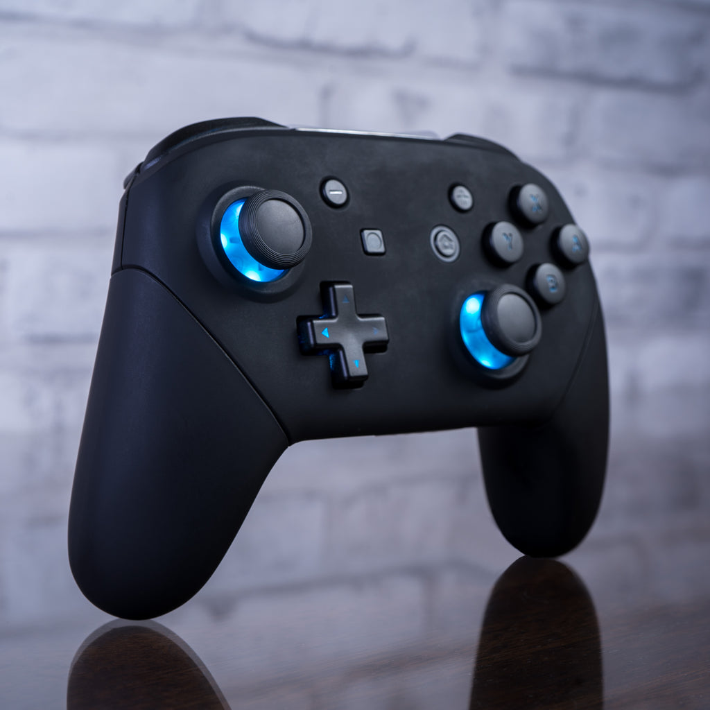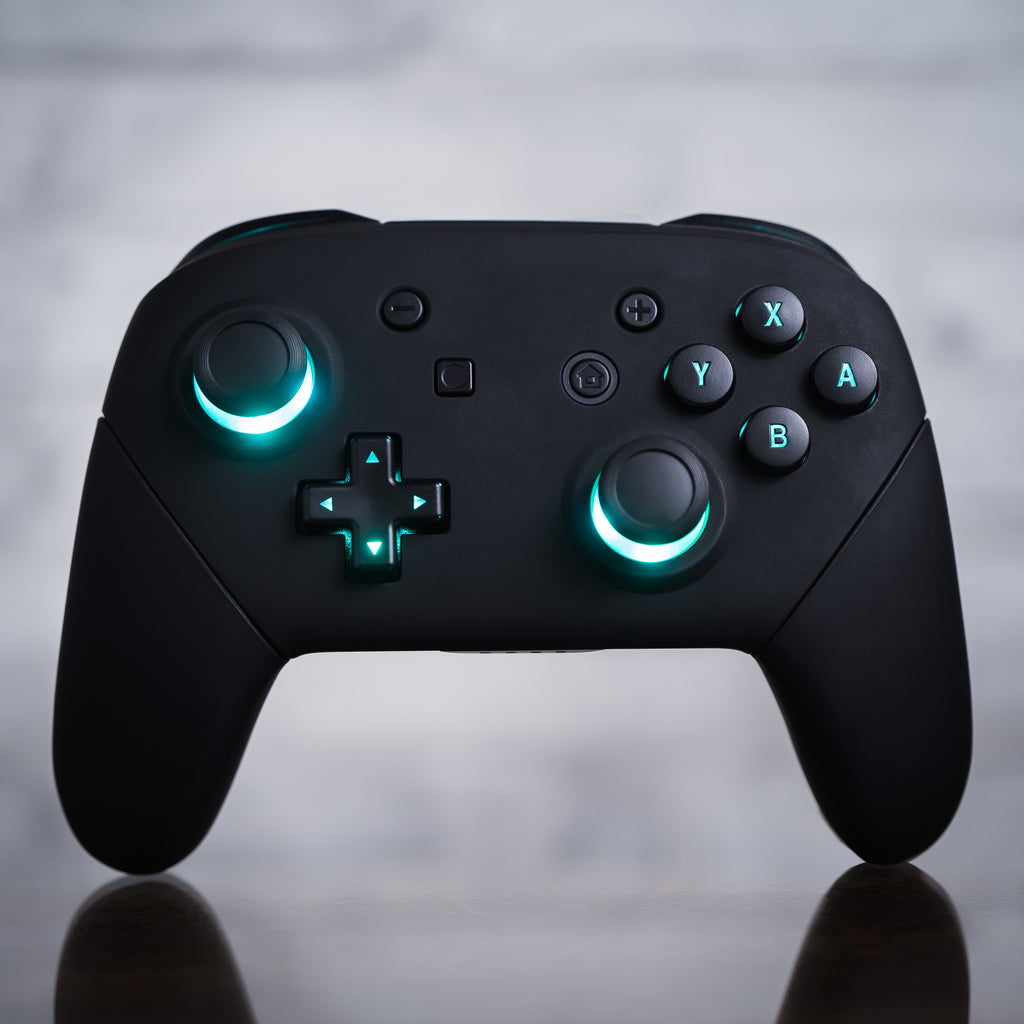 CUSTOM Pro Controller Nintendo SWITCH LED Mod Schwarz auf Schwarz mit hintergrundbeleuchteten Tasten