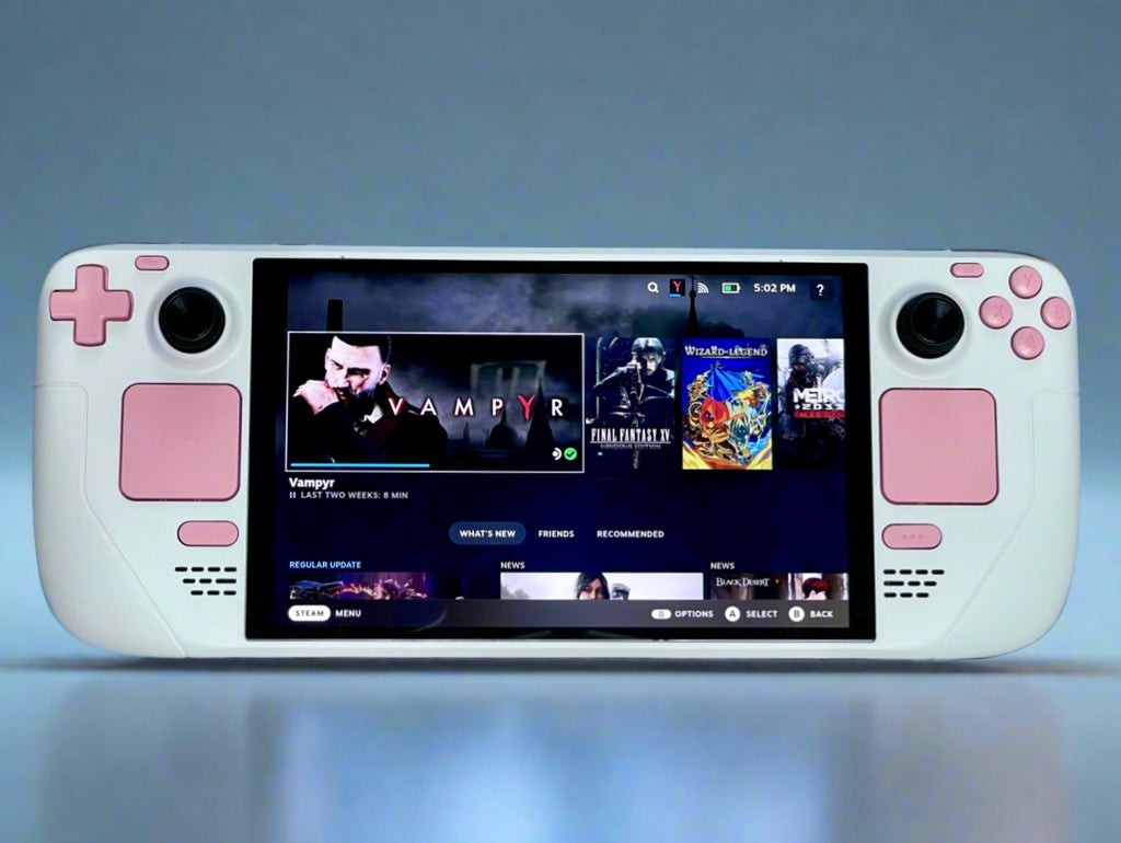 Customized Steam Deck Handheld Gaming Computer By Valve White & Peachy Pink