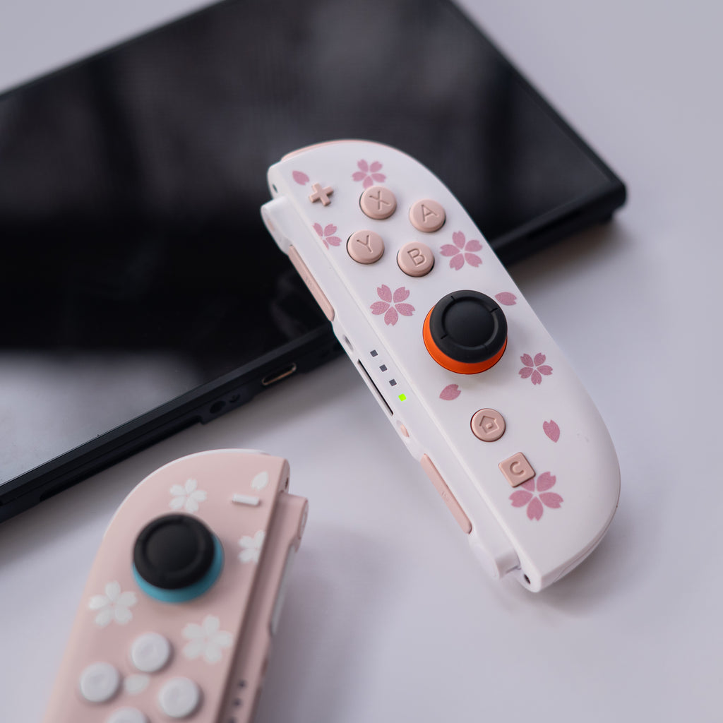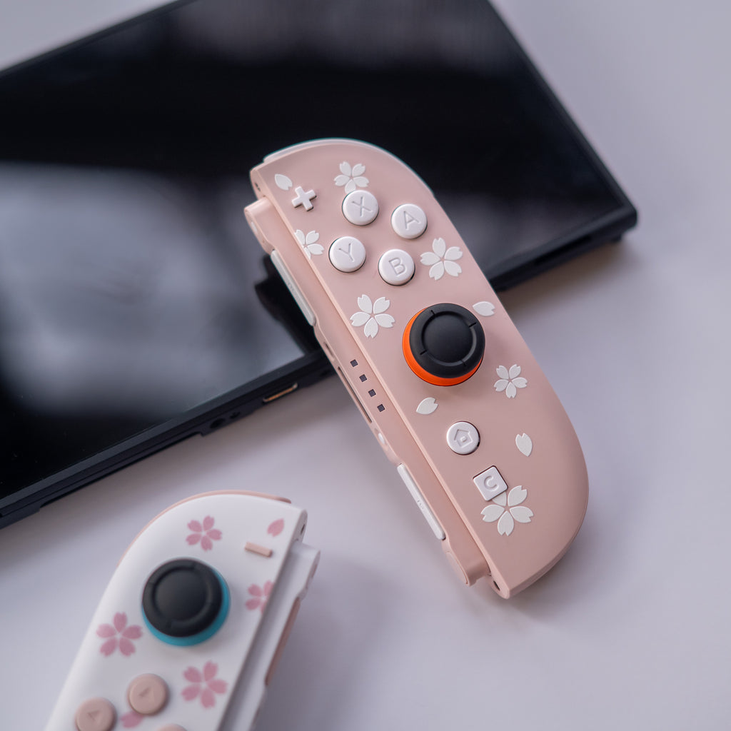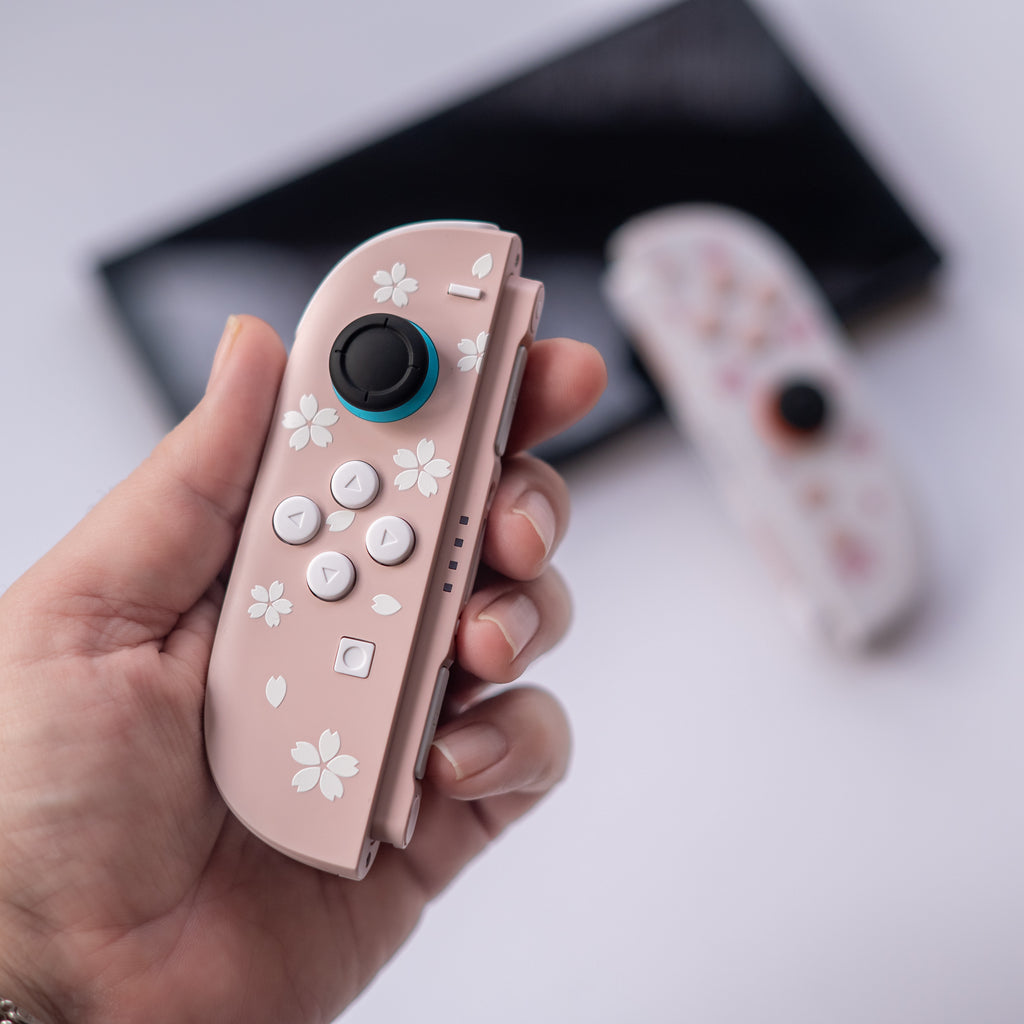One Joy-Cons features warm Pink shells with White petals, representing the deep color of the cherry trees in full bloom.