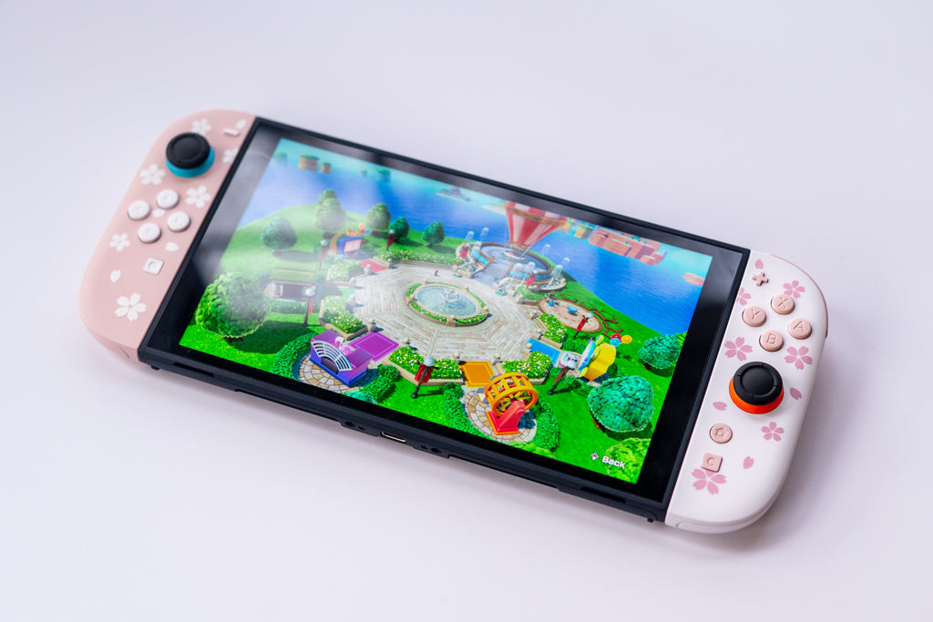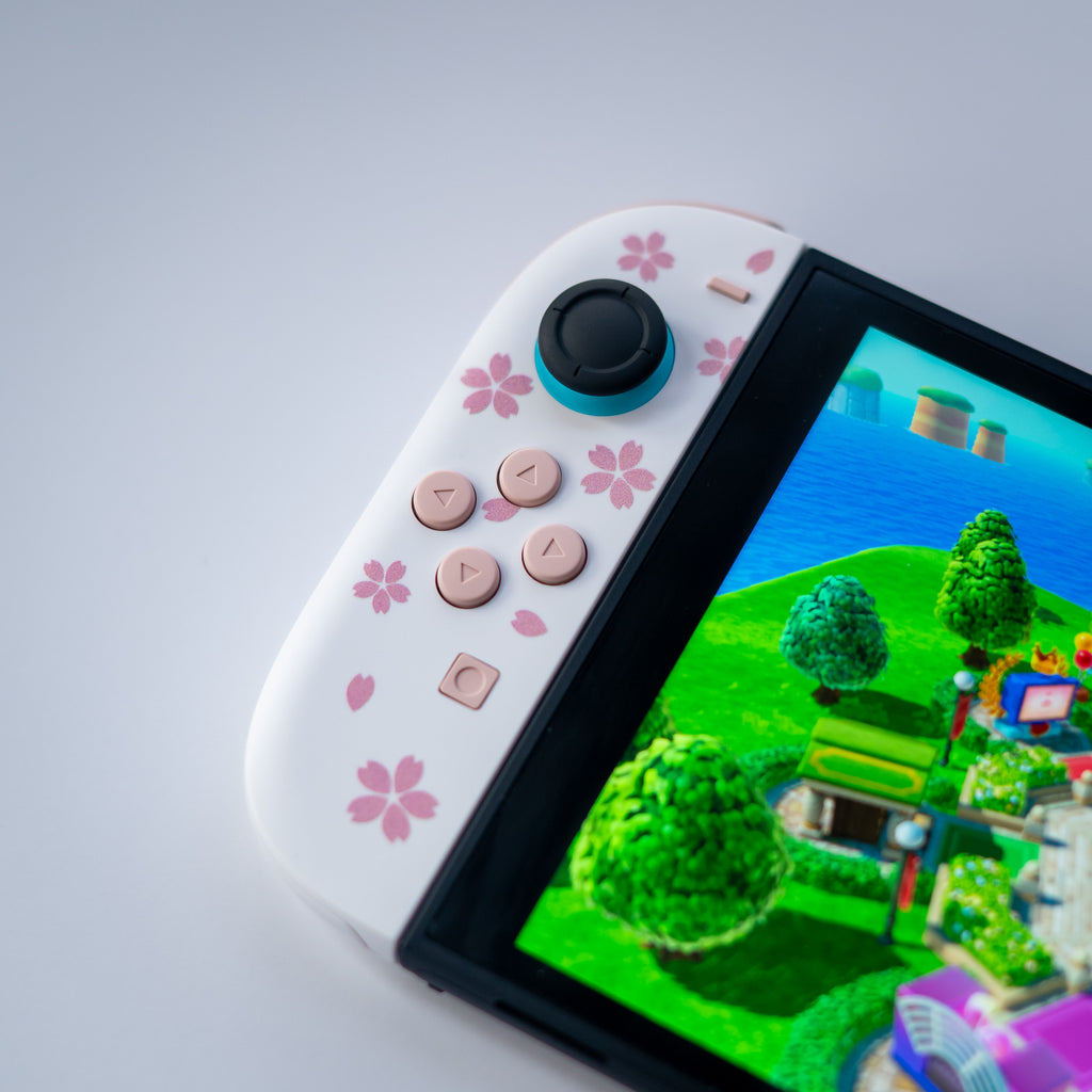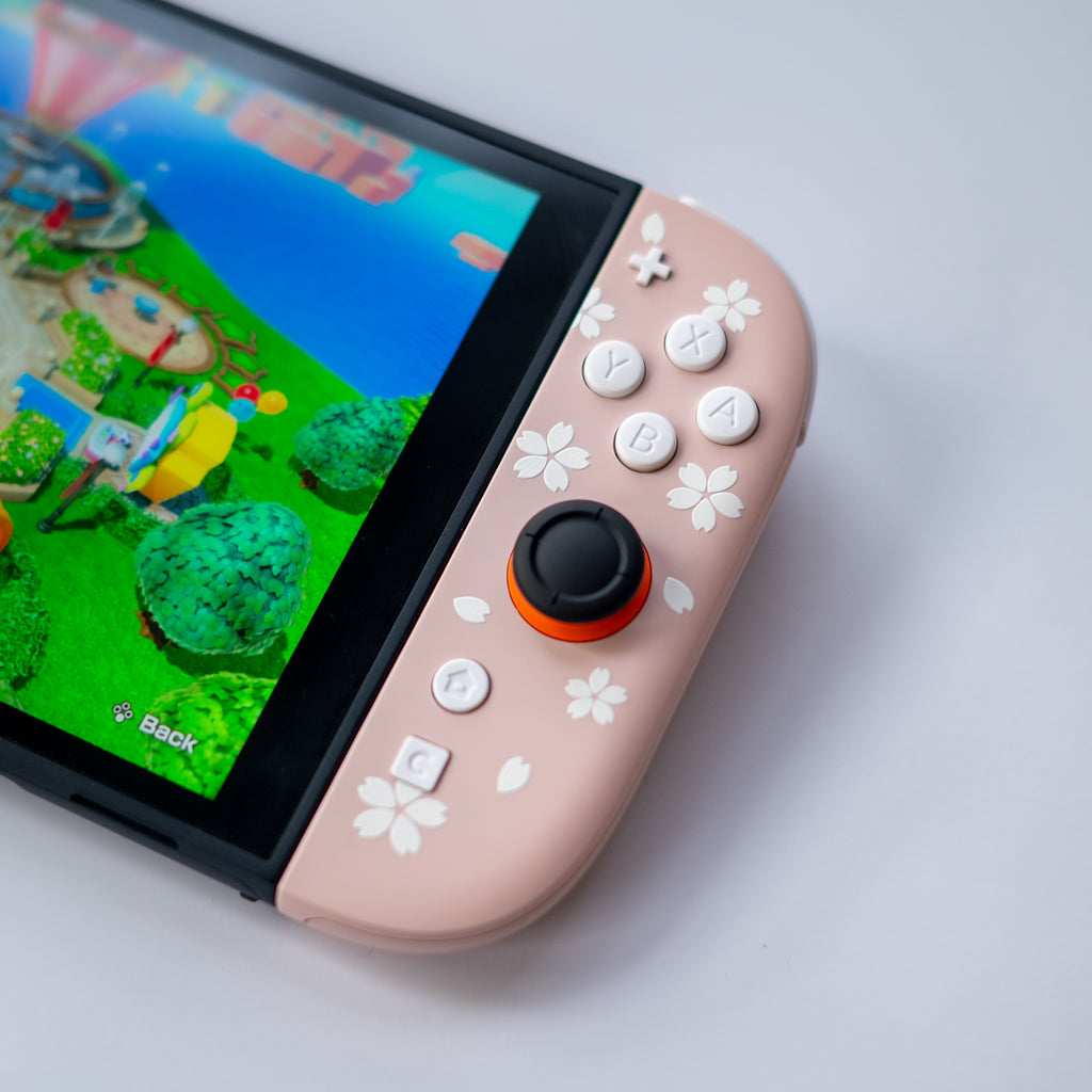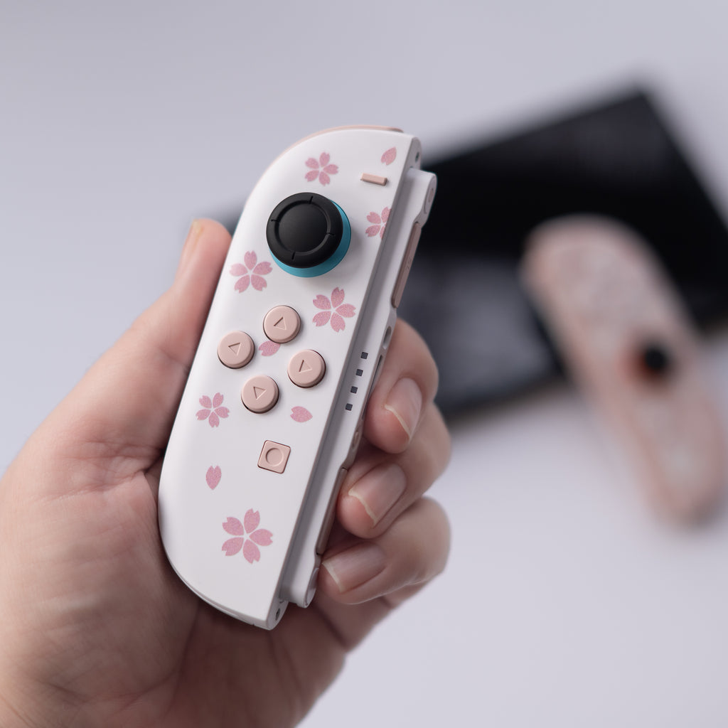 One Joy-Cons features warm Pink shells with White petals, representing the deep color of the cherry trees in full bloom.