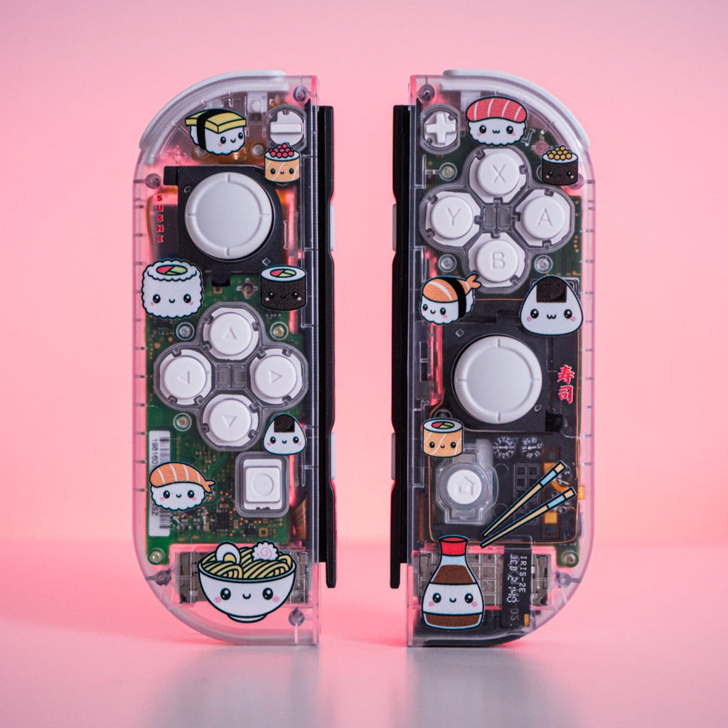 Our “Build At Home” set includes everything you need to take your own Joy-Cons apart and rebuild them into beautiful-looking GTZ Designed Kawaii Sushi customized Joy-Cons.