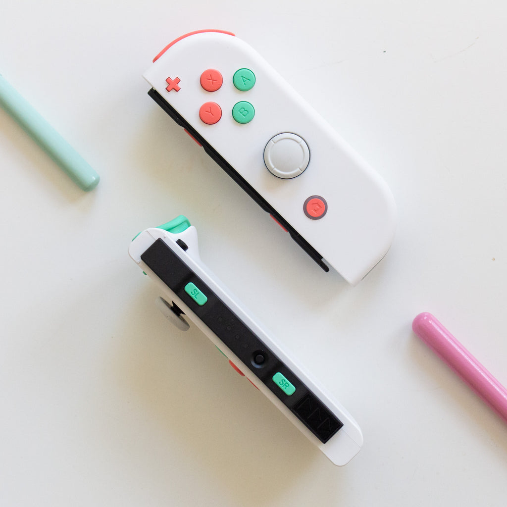 Pair these customized White, Mint and Coral Pink Joy-Cons with your Nintendo Switch for the perfect pastel experience and soft touch! They have a very fresh and sweet vibe :)