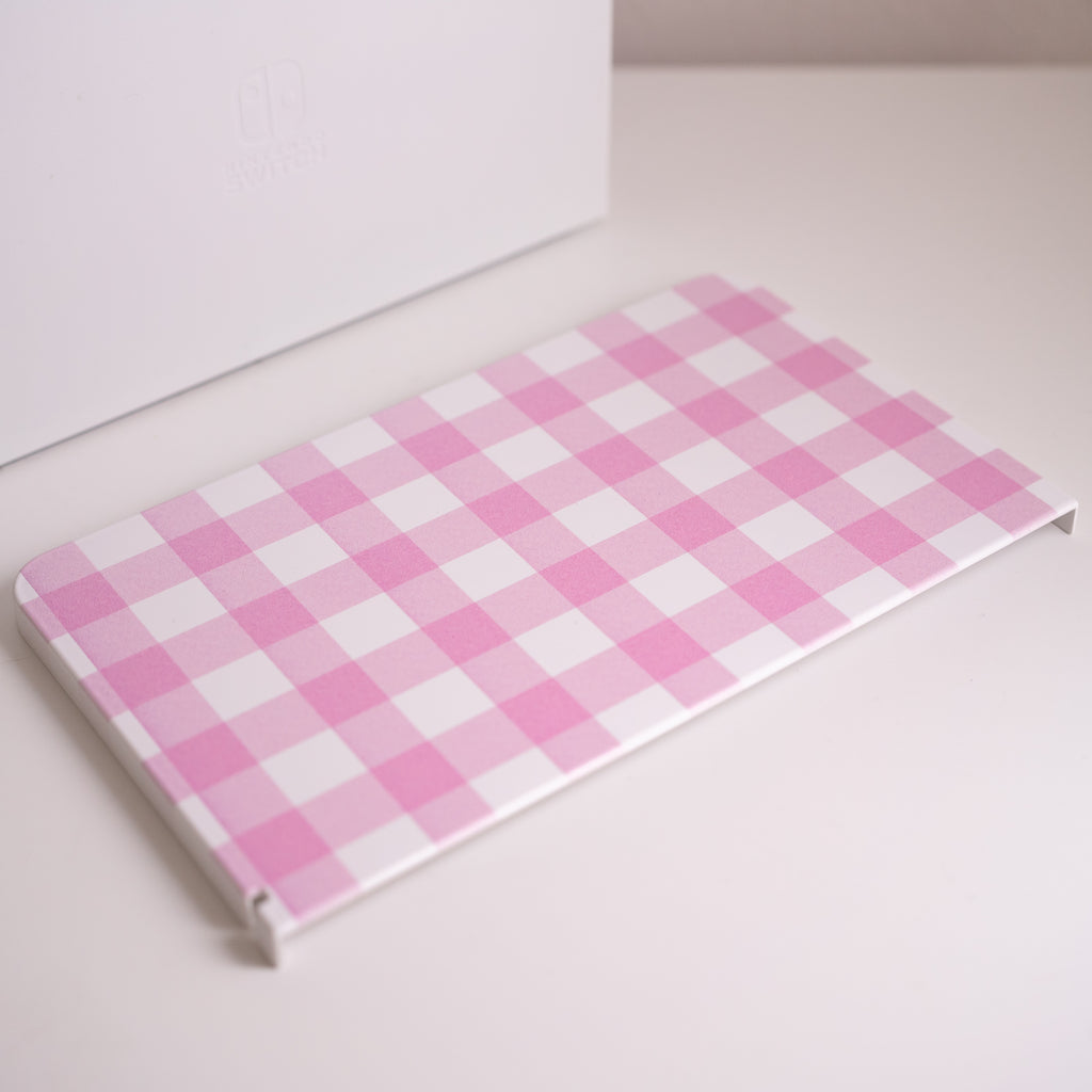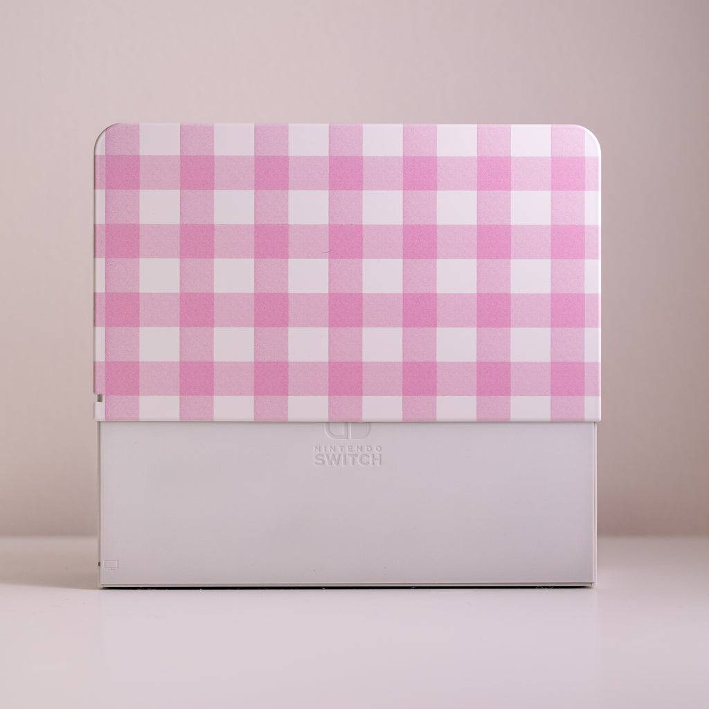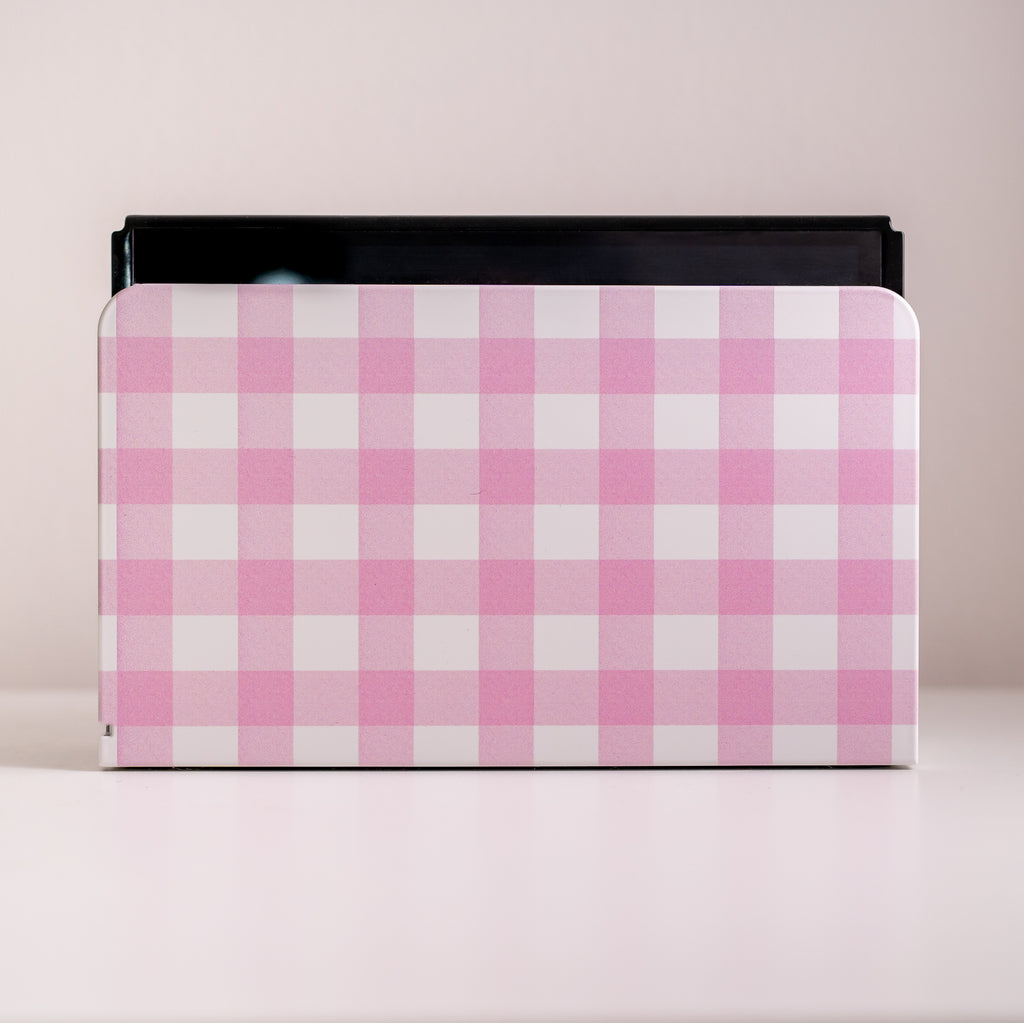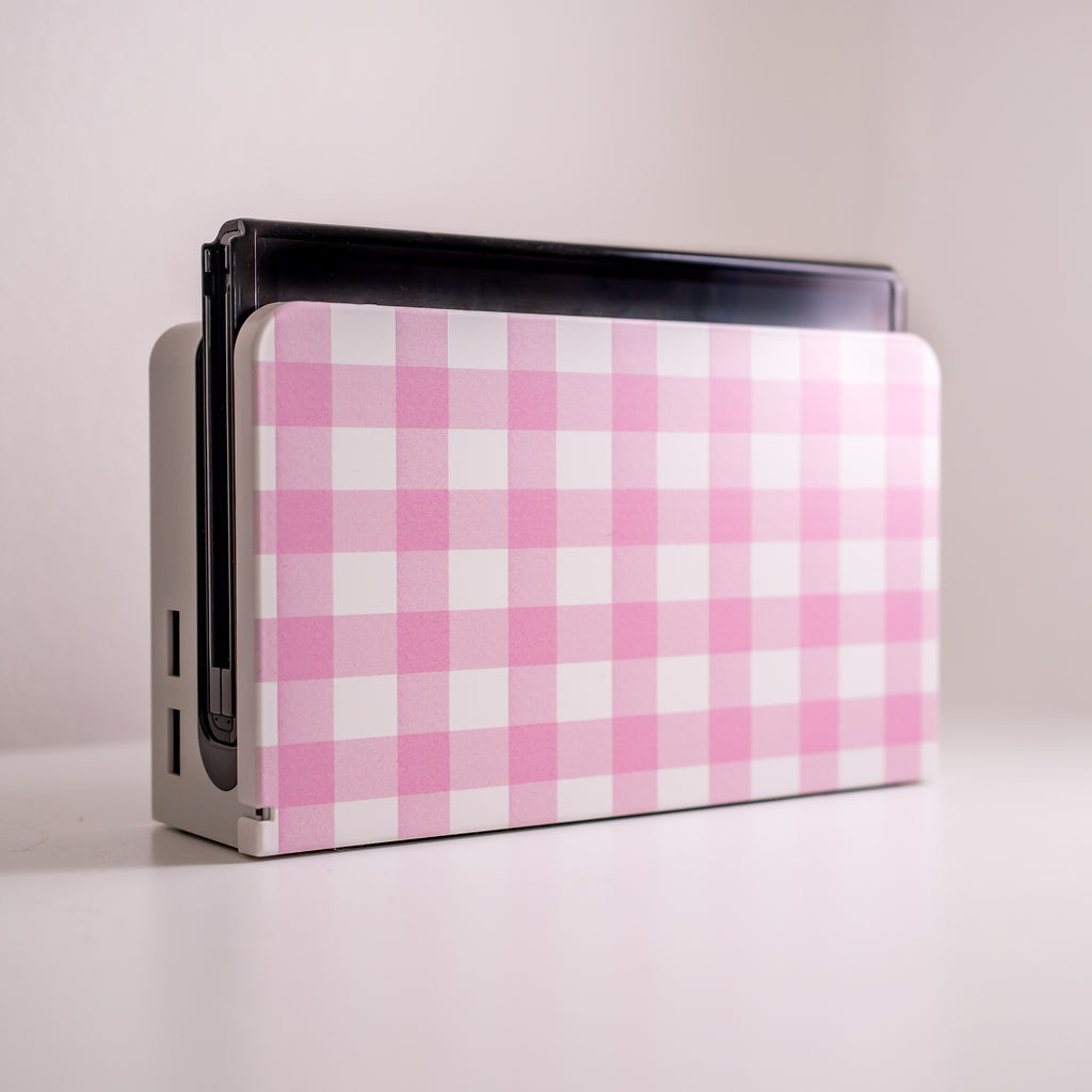 Custom Nintendo Switch Dock Cover Pink Gingham Pattern