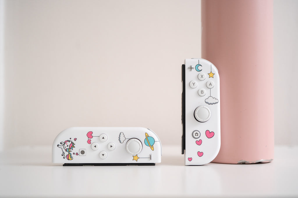 Their high quality, durable, UV-printed design with unicorns, hearts and stars will make your Switch the cutest ever gaming console, in your hands or in your gaming setup.